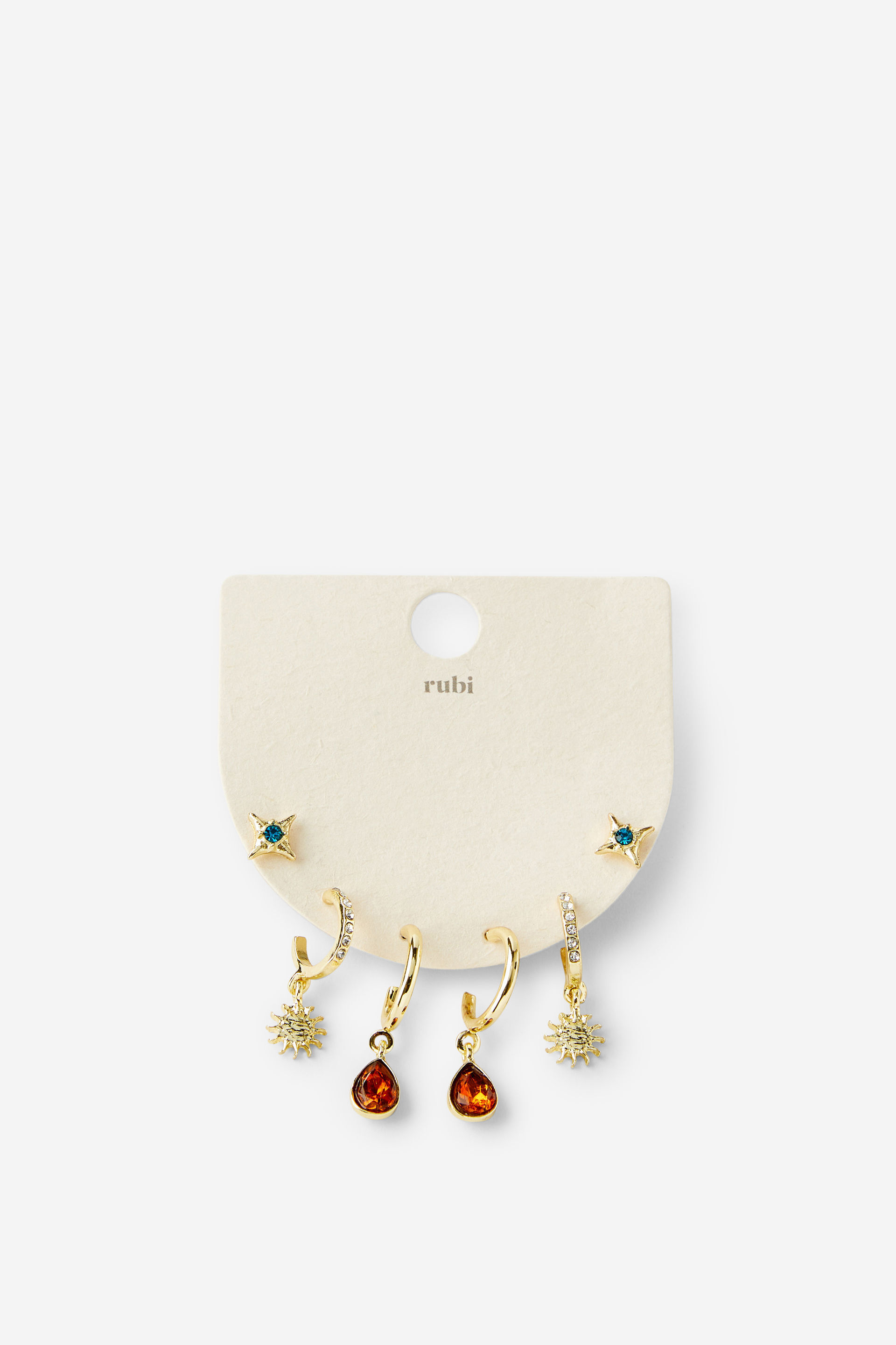 Finish off any outfit with the 3 pack of mid earrings by Rubi.