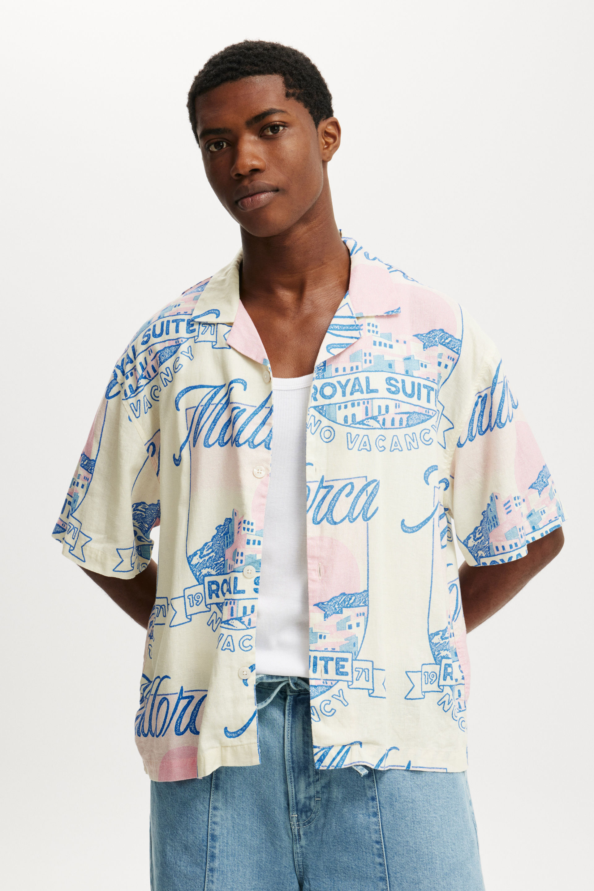 Introducing you to your new party shirt; The Cabana short sleeve shirt. Featuring a button front, camp collar, cropped and boxy fit. This is a staple for your shirts collection.