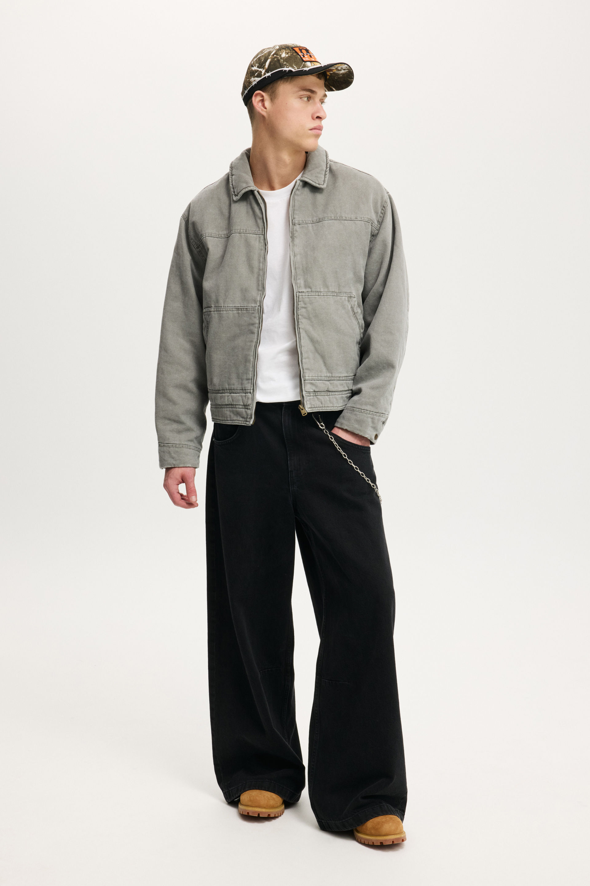 This cropped worker jacket brings just the right mix of rugged and cool. Easy to throw on, hard to forget. Whether you're out for a walk or catching a late-night drink, it’s got that laid-back look that does more than just keep you warm.