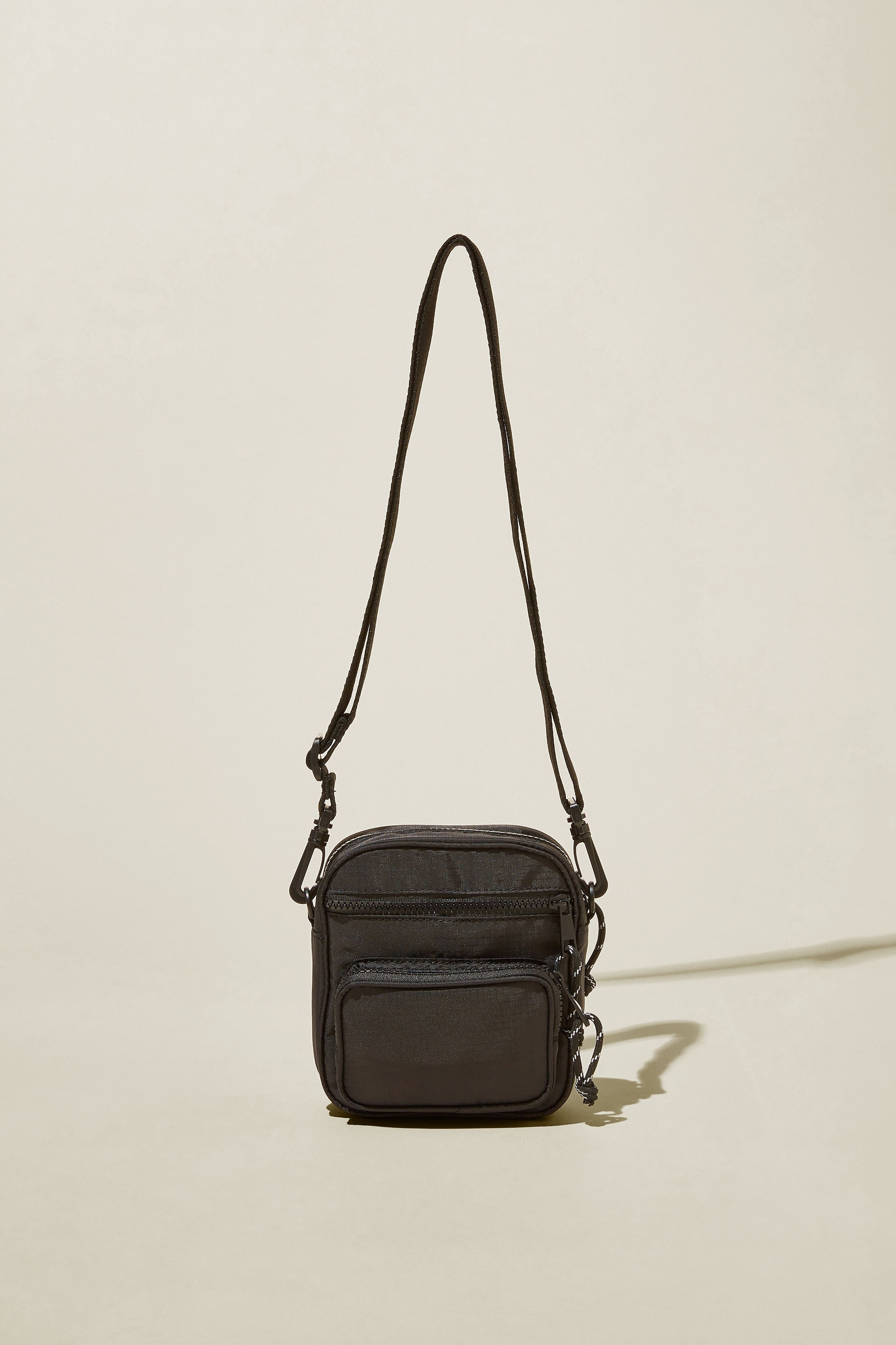 The classic Cross Body Bag in ripstop fabric. Fits all the essentials and perfect for a fun day out. Features bungee cord details and plastic hardware.