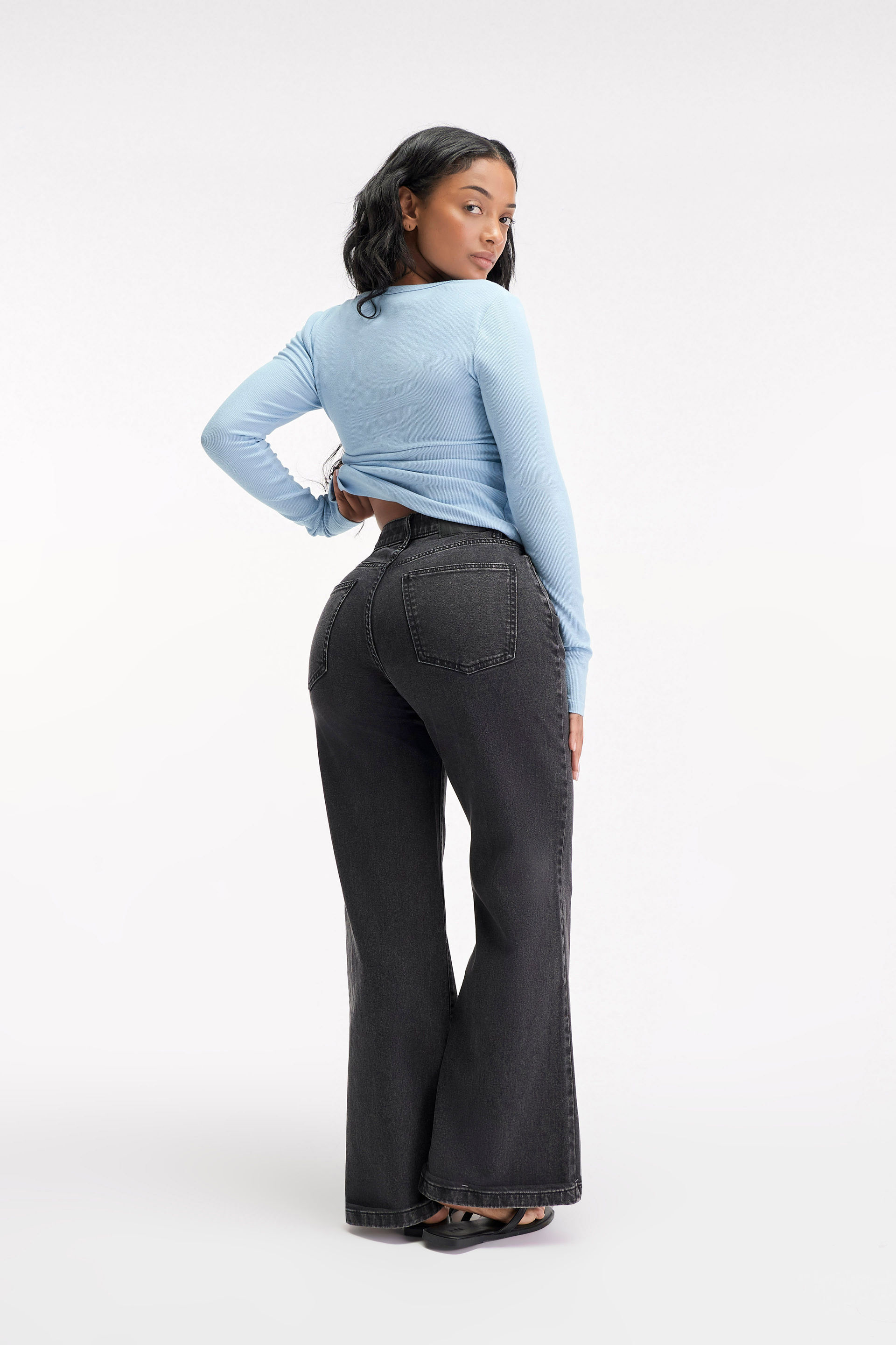 Designed for curves. Made to move. This wide-leg fit is all about balance — a structured look with a hint of stretch, a gap-proof waist, and just enough room through the hips where it matters. Clean lines. No compromise. High rise and made to flatter, whether you're pairing them with a baby tee or your favourite going-out top. Crafted with care from responsibly sourced denim with a made-for-you feel. You deserve jeans that do both.