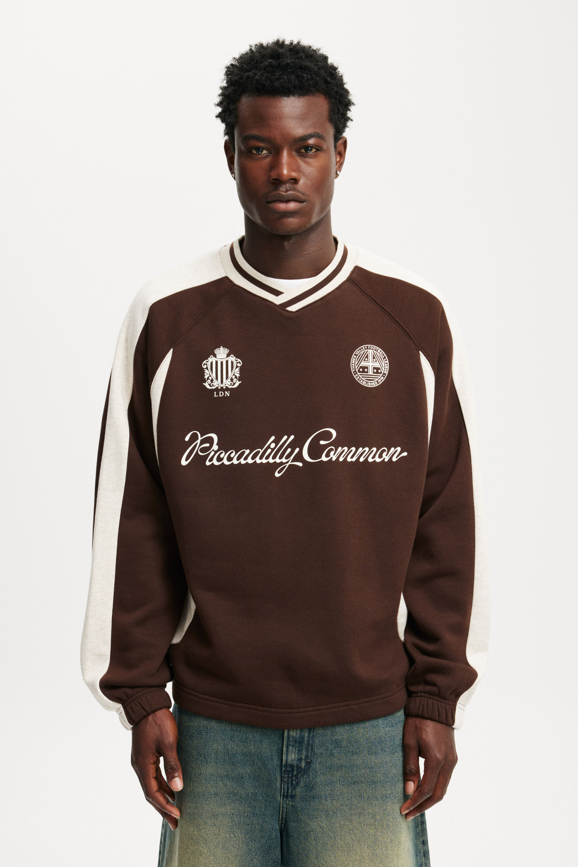 These London graphics from our sport score range are going to make your mates heads turn! The Graphic V-Neck Fleece Sweater has a jacquard rib, contrast side paneling and piping which screams stylish.